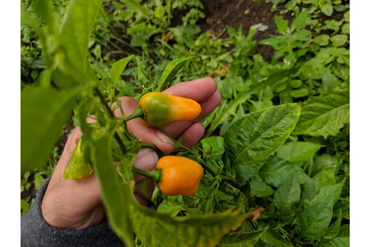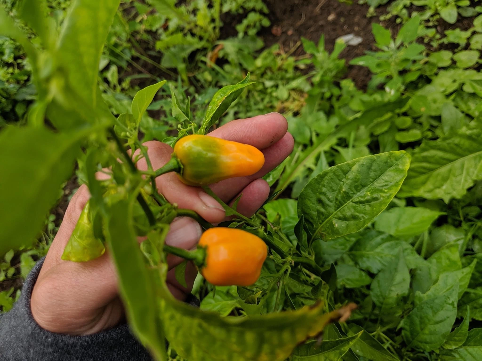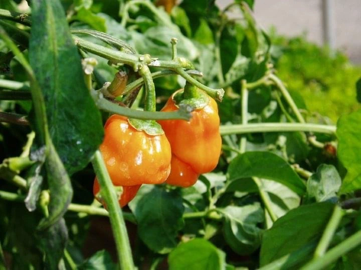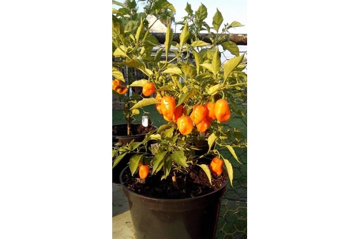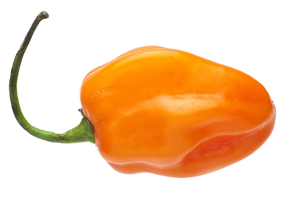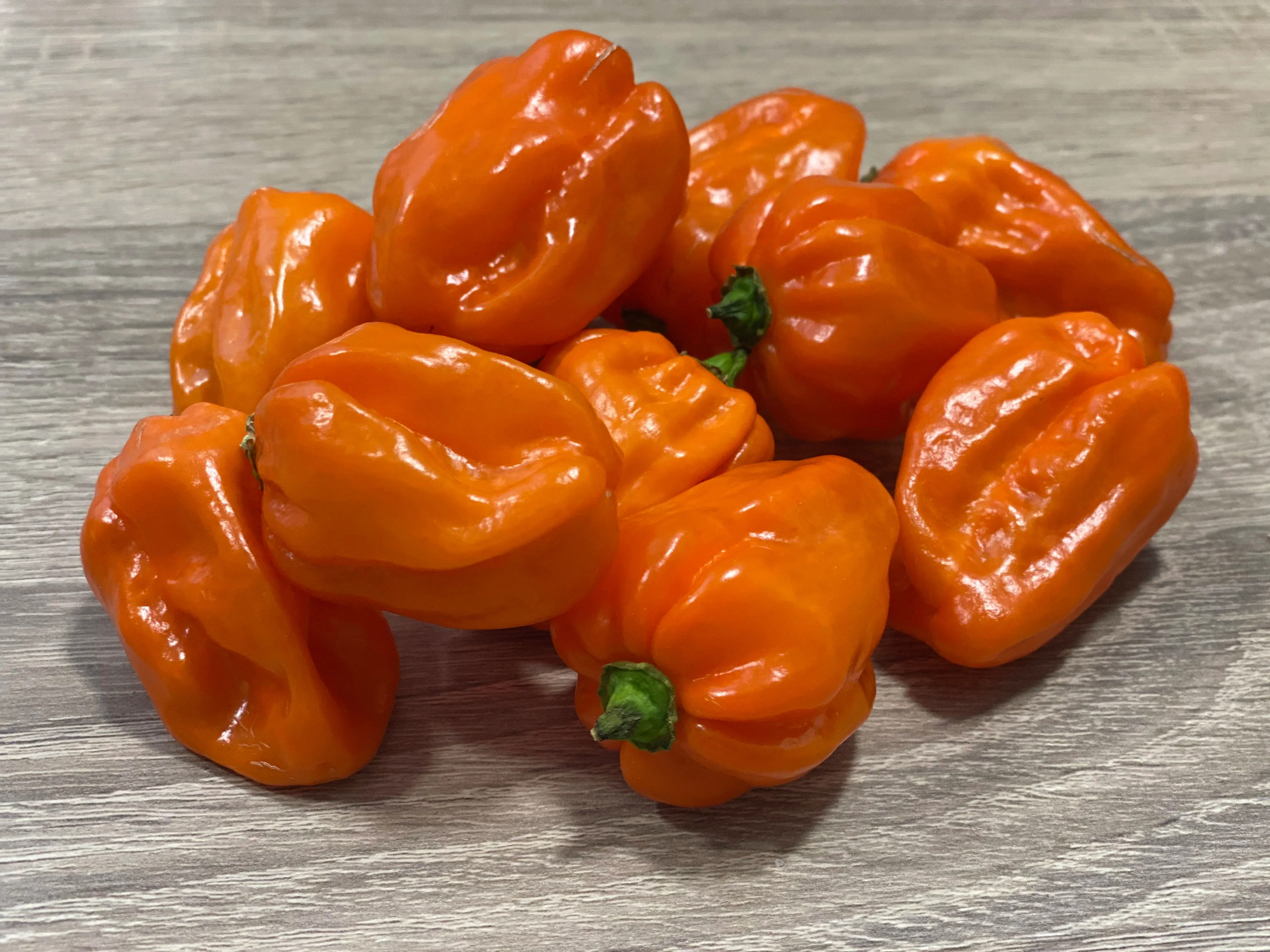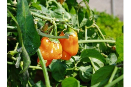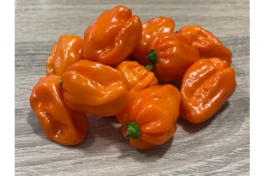 The orange habanero ripens from green to bright orange. The skin is thin and waxy with light external wrinkles. The pods have a distinctive lantern-like shape and are no larger than two cm long and one to two cm wide.